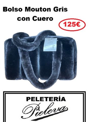 Bolso de Hombro en Mouton Gris y Cuero (Diseño Listado)