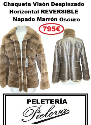 Chaqueta de Visón Despinzado Horizontal Reversible (Napado) Marrón Oscuro