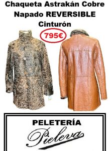 Versatilidad total con esta magnífica chaqueta reversible «2 en 1». Por su cara principal, luce un espectacular Astracán en tono Cobre (marrón bronceado), ofreciendo la textura rizada característica y una elegancia atemporal. Incluye cinturón para ajustar la prenda a la cintura y estilizar la figura.