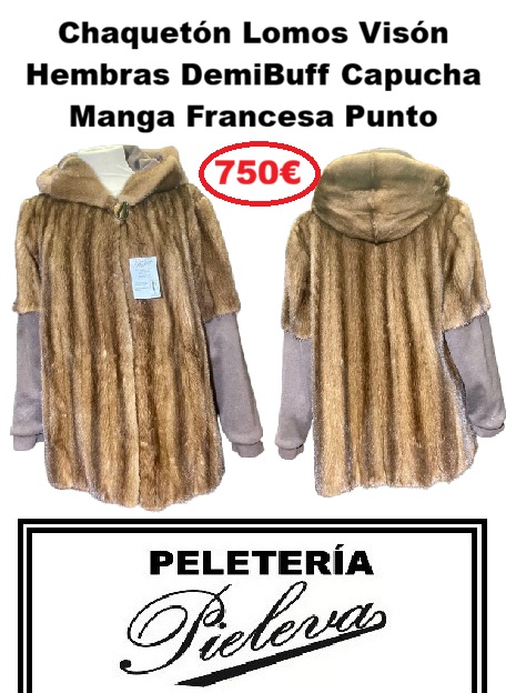 Chaquetón de Visón Hembras DemiBuff con Capucha y Mangas de Punto