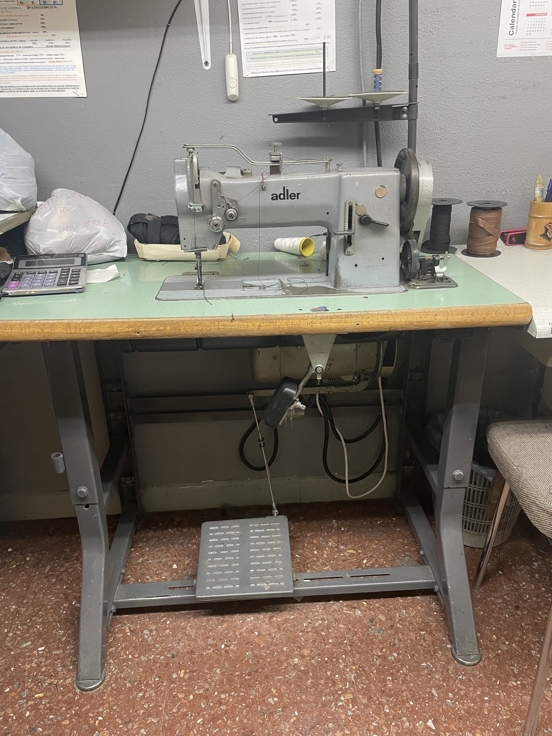 Herramienta profesional robusta. Máquina de triple arrastre especial para trabajos pesados: cuero, piel, lonas, toldos y tapicería. Incluye mesa de trabajo y motor. Funcionando correctamente.